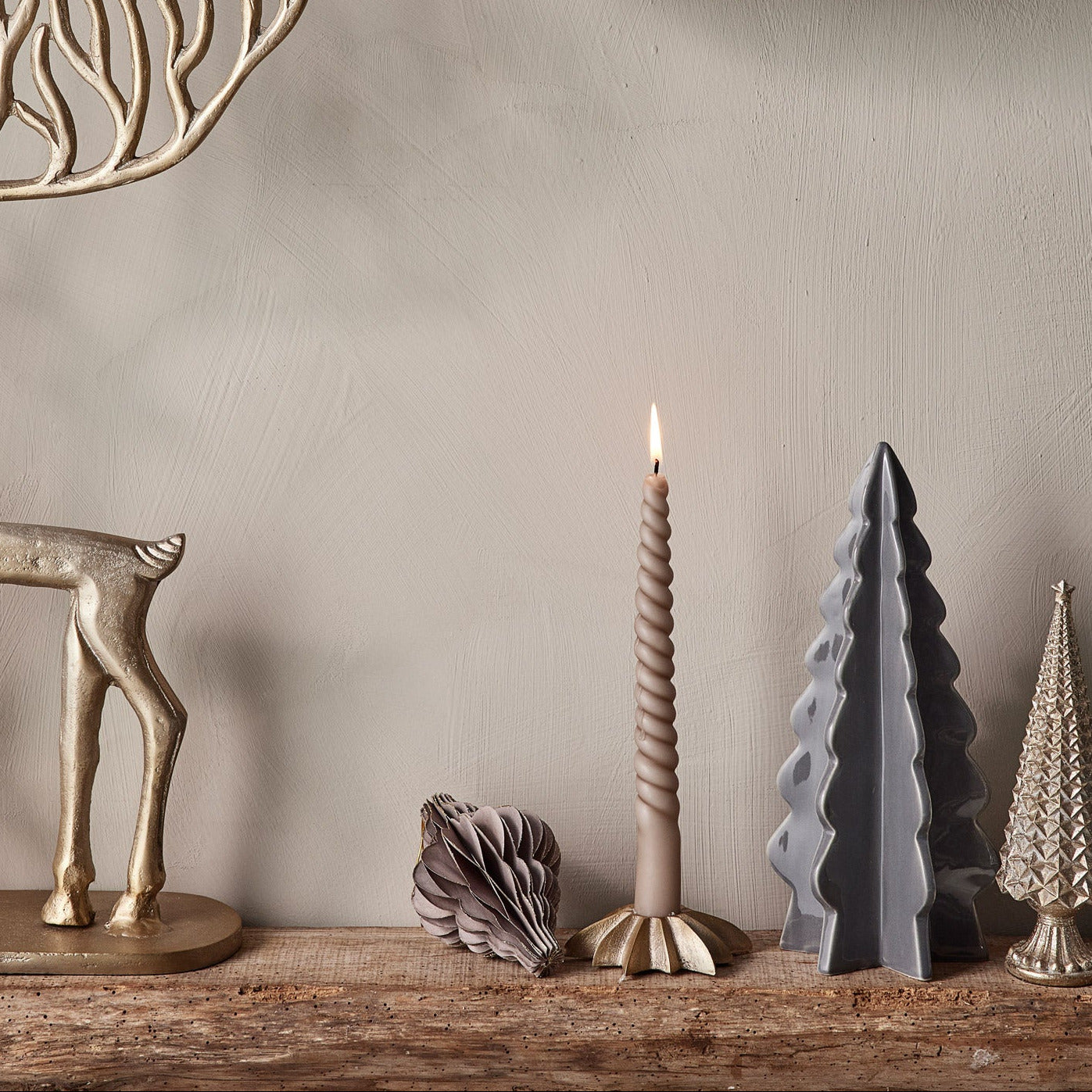Das 2er Set Lene Stabkerzen begeistert mit spiralförmigem, gedrehtem Design und sorgt für eine elegante, gemütliche Atmosphäre. Mit einer Länge von 25 cm und tropffreiem Brennverhalten sind sie ideal für Tafel, Leuchter oder Adventskranz.