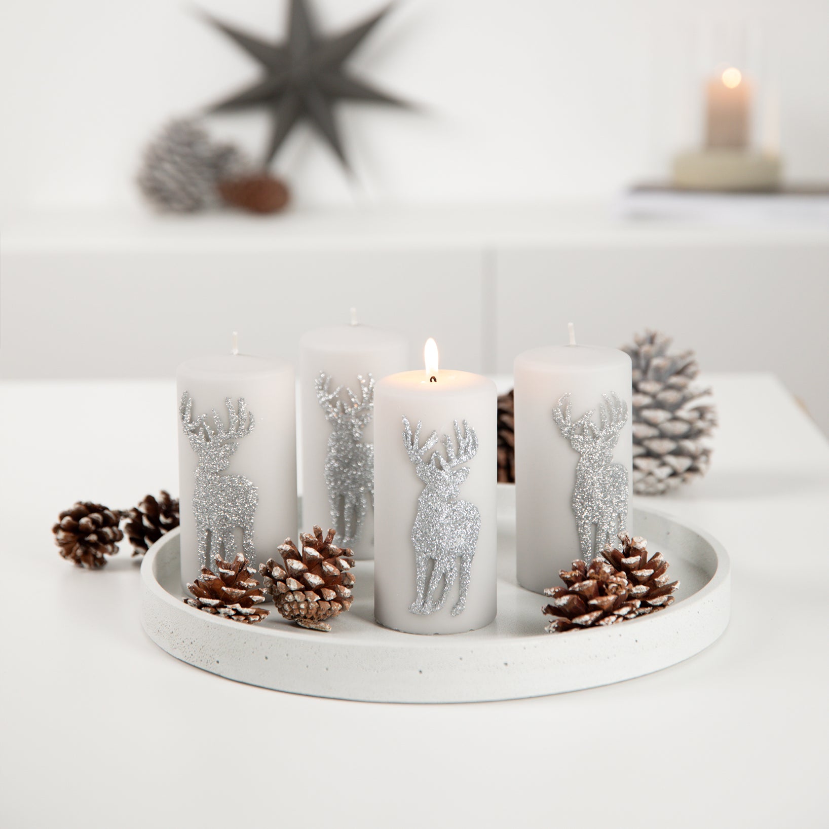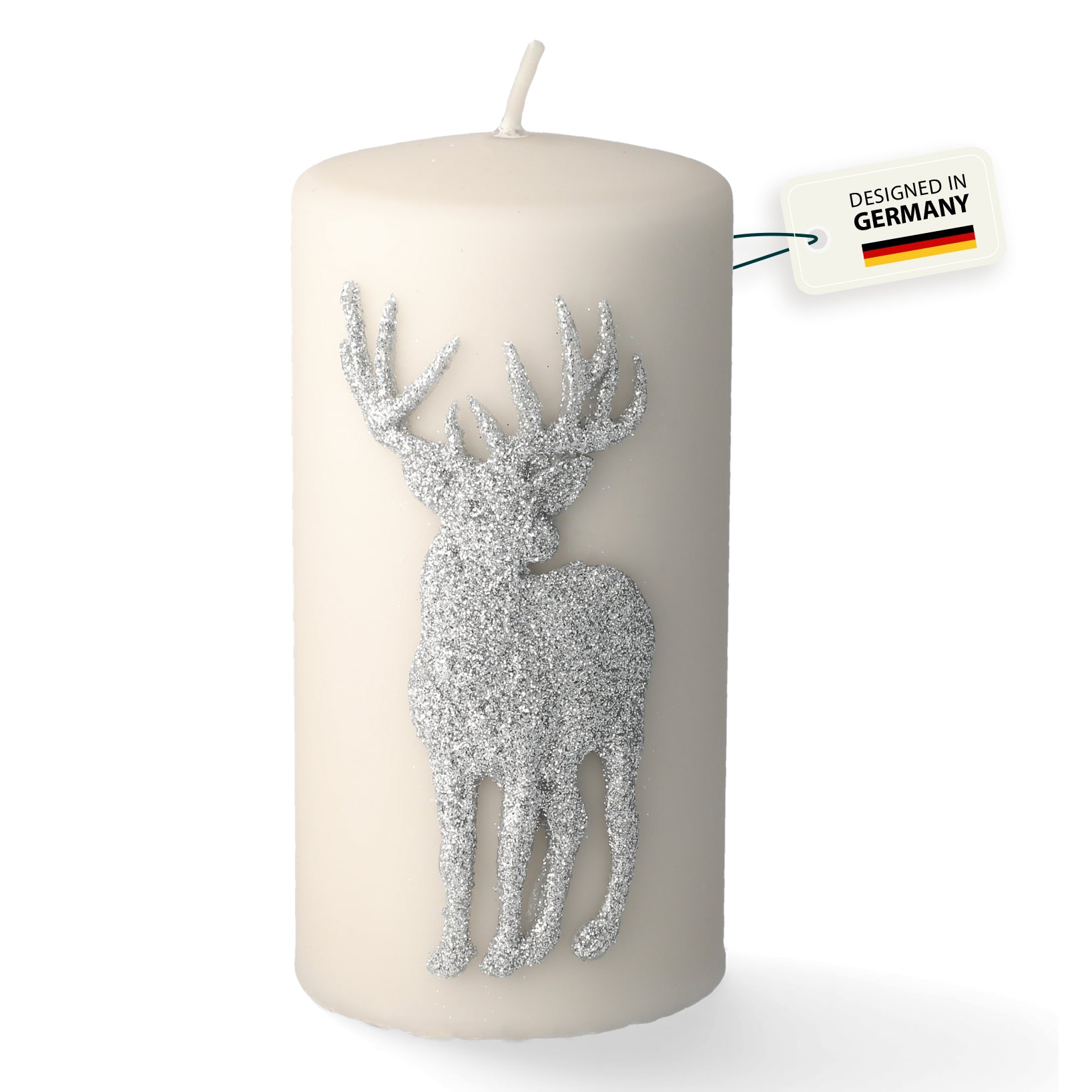 Moderne Stumpenkerze mit edlem Rentier-Motiv