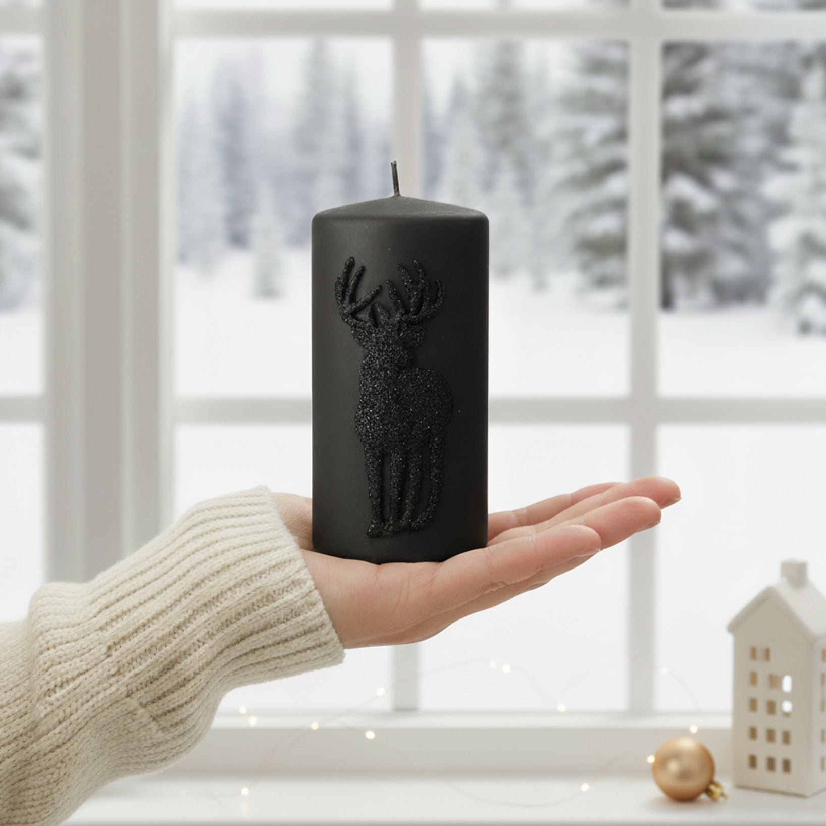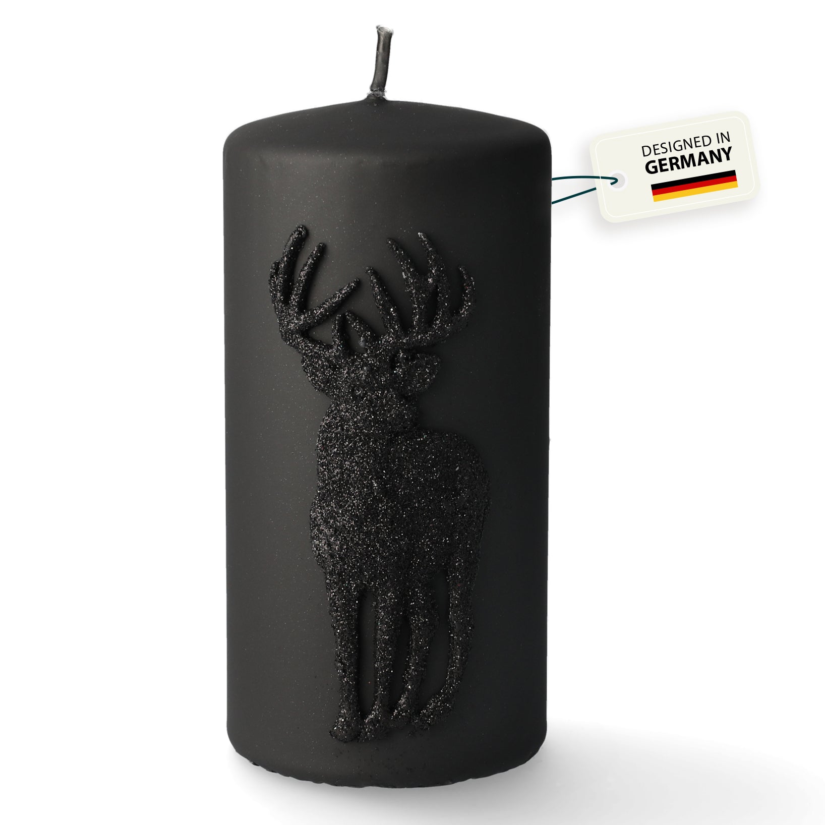 Stumpenkerze Rensdyr mit Hirsch-Motiv – elegant & festlich