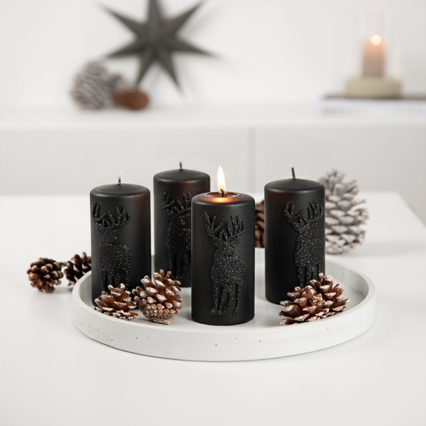Moderne Stumpenkerze mit edlem Rentier-Motiv